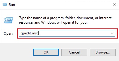 Bước 2: Nhập gpedit.msc > nhấn Enter để mở Group Policy Editor.
