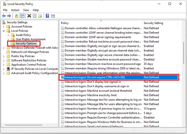Bước 4: Tìm dòng Interactive logon: Do not require CTRL + ALT+ DEL.