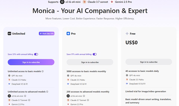 Monica AI (monica.im) là một trợ lý AI cá nhân dưới dạng tiện ích mở rộng (extension) cho Chrome/Edge, hỗ trợ người dùng tương tác với AI ngay trong quá trình duyệt web.