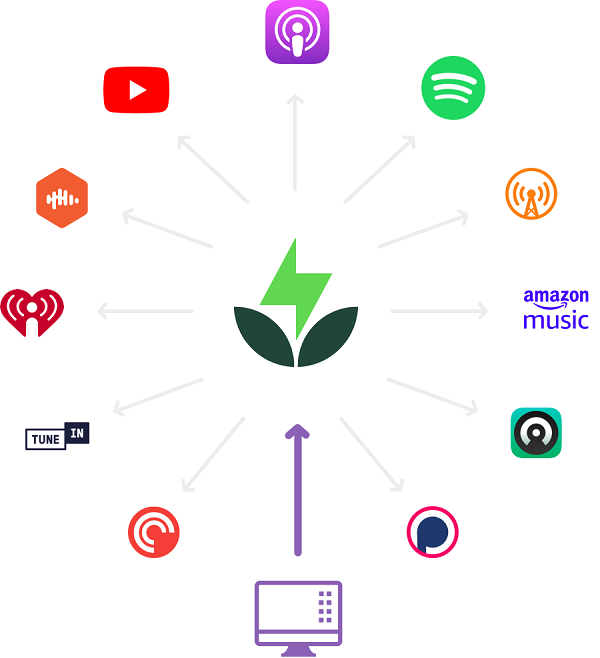 Lưu trữ và phân phối: Lưu trữ các tệp âm thanh của podcast và giúp bạn phân phối chúng đến các nền tảng podcast phổ biến như Spotify, Apple Podcasts và Google Podcasts.