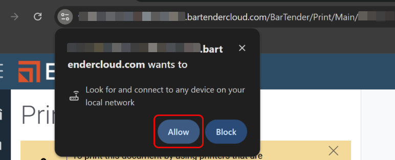 Cách Bật quyền truy cập mạng cục bộ cho BarTender Cloud trên Google Chrome