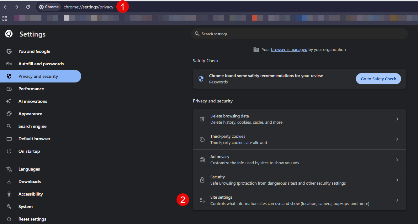 - Mở Chrome. Nhập chrome://settings/privacy vào thanh địa chỉ và nhấn Enter.