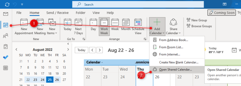 Cách mở Lịch dùng chung trong Outlook