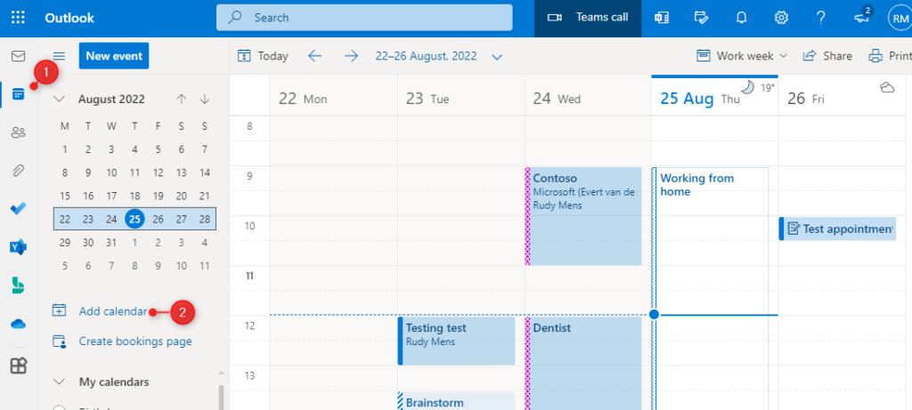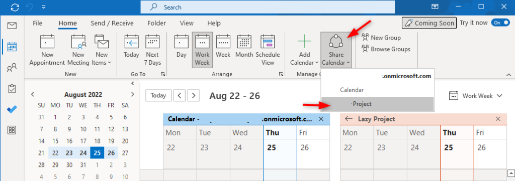 Chúng ta cũng có thể tạo lịch mới trong Outlook 365 và chia sẻ với các thành viên trong dự án. Các bước thực hiện khá giống nhau, chỉ khác về giao diện.