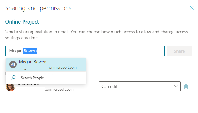 - Bạn sẽ cần thêm từng người một, tìm kiếm theo tên hoặc địa chỉ email và chọn người dùng.