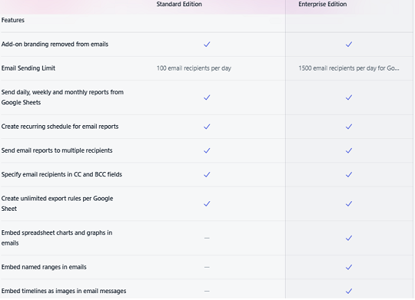 Hoạt động mượt mà với Gmail, Google Drive, Google Forms. Tiện ích bổ sung đa năng này có thể xuất Google Trang tính hoặc một phần của Google Trang tính, gửi chúng dưới dạng tệp đính kèm theo lịch trình định kỳ, hỗ trợ CC & BCC, v.v.!