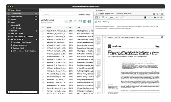 Hiệu quả và khả năng sử dụng là chìa khóa khi viết một bài nghiên cứu. EndNote 2025 cho phép bạn nhanh chóng chèn một trích dẫn được đánh dấu từ tệp PDF và trích dẫn tương ứng vào tài liệu chỉ bằng một cú nhấp chuột.