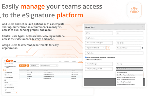Bao gồm tất cả các tính năng của Foxit eSign Essentials và quyền truy cập Mô-đun:
