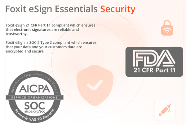 Các thỏa thuận được ký kết với Foxit eSign có tính ràng buộc pháp lý, mang lại sự an tâm cần thiết để làm việc hiệu quả.