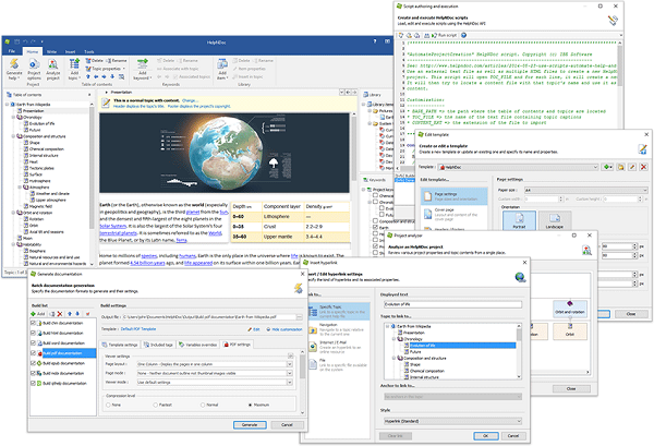 Mọi thứ đều có thể lập trình được trong HelpNDoc: tạo và quản lý dự án, chủ đề, mục thư viện, từ khóa… Nhờ trình soạn thảo tập lệnh, bạn có thể dễ dàng tự động hóa các tác vụ lặp lại và xử lý nhanh chóng các tình huống cực đoan. API của HelpNDoc cung cấp hỗ trợ toàn diện cho mọi khía cạnh của dự án HelpNDoc và có thể truy cập thông qua các lệnh Pascal dễ học. Bạn cần sắp xếp lại chủ đề? Tạo một loạt chủ đề mới theo chương trình? Thay thế tất cả các mục thư viện? Chỉ cần khởi chạy Trình soạn thảo tập lệnh, nhập một số hướng dẫn và nhấn chạy: HelpNDoc sẽ làm phần việc khó khăn này thay bạn.