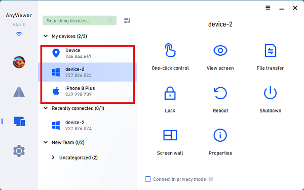 AnyViewer là phần mềm máy tính từ xa tuyệt vời dành cho máy tính Windows, cho phép bạn kết nối với máy tính từ xa từ bất kỳ đâu. Sau khi đăng nhập vào các thiết bị có cùng tài khoản AnyViewr, bạn có thể hoàn tất các thao tác, tính năng bên dưới giữa các máy tính được liệt kê trong danh sách My devices.