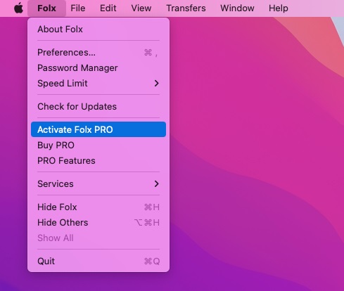 Khởi chạy phần mềm > click Activate Folx PRO trên menu.