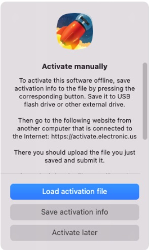Nếu máy Mac của bạn không được kết nối Internet, bạn sẽ cần kích hoạt Folx theo cách thủ công (ở chế độ ngoại tuyến). Sau khi nhập activation code > click Activate manually và làm theo hướng dẫn để kích hoạt.