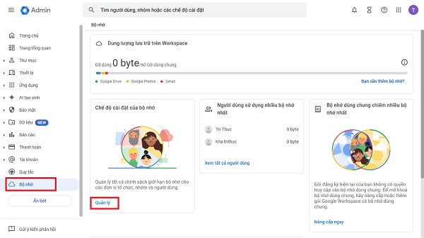 Hướng dẫn quản lý dung lượng (Storage) trên Google Workspace
