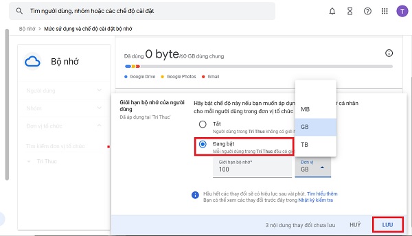 1/ Hướng dẫn quản lý, giới hạn dung lượng (Storage) cho toàn Tổ chức trên Google Workspace