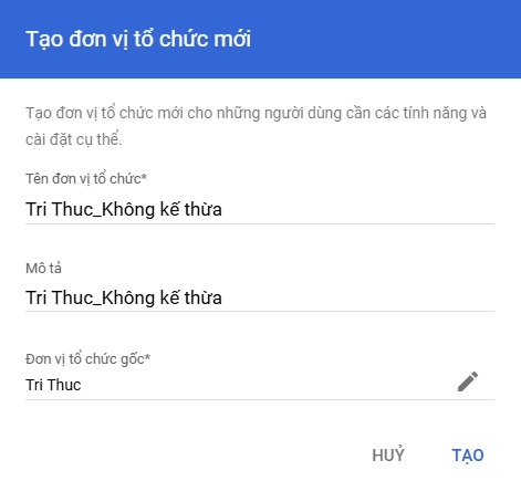 Cửa sổ tạo mới hiện ra > Nhập các thông tin của Tổ chức mới > click Tạo.