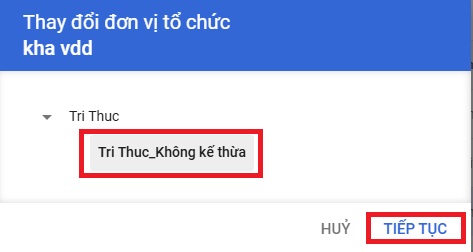 Để quản lý và đặt giới hạn dung lượng Storage cho từng User thì ta phải chuyển User này không nằm trong Nhóm tổ chức đã set dung lượng storage ở bước 1.