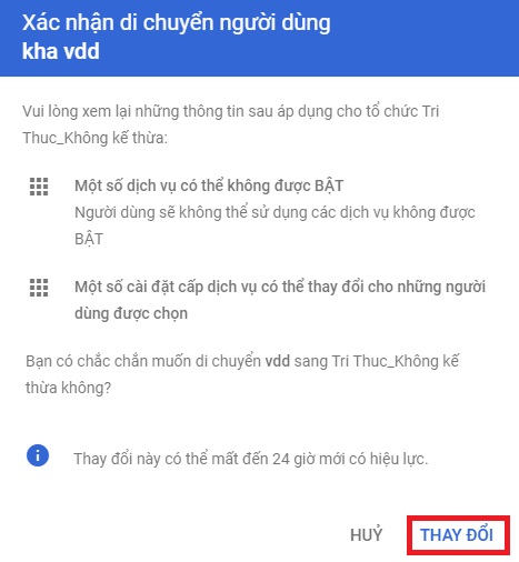 Thông báo xác nhận hiện ra > Click chọn Thay đổi để hoàn tất quá trình.