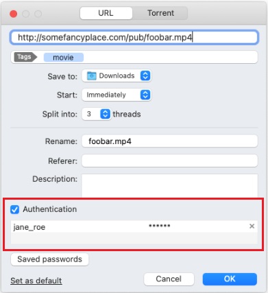 Folx hỗ trợ hai loại xác thực: xác thực cơ bản và xác thực dựa trên cookie.