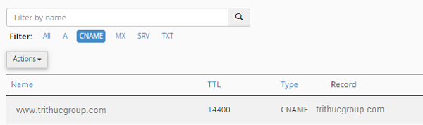 Được sử dụng để đặt bí danh cho một tên miền hoặc tên miền phụ cho một tên miền khác. Nó trỏ tên miền phụ đến một tên miền khác như www và mail  và không bao giờ trỏ trực tiếp đến một địa chỉ IP.