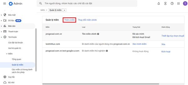 1/ Hướng dẫn thêm tên miền, domain vào Google Workspace