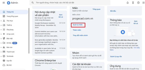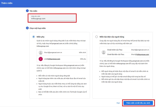 Hướng dẫn thêm tên miền, domain vào Google Workspace
