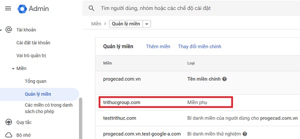 Vậy là ta đã thêm Miền/Domain phụ vào trong tài khoản google workspace thành công.
