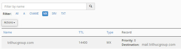 Record MX (mail exchange) kiểm soát nơi nhận email. Record này cho máy chủ của bạn biết nơi gửi email của bạn. Tùy thuộc vào máy chủ email của bạn, bản ghi MX sẽ khác nhau.