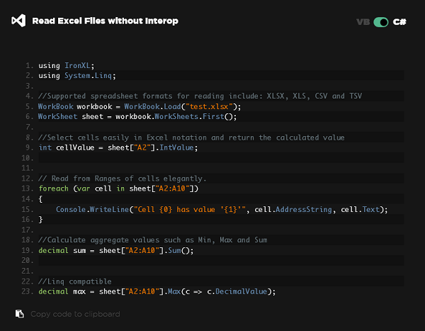 IronXL là thư viện C# Excel hàng đầu để tạo và chỉnh sửa tài liệu Excel trong .NET. API thân thiện với người dùng của nó cho phép các nhà phát triển thêm chức năng Excel vào các dự án .NET trong vài phút.