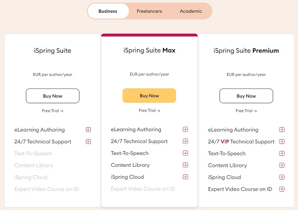 Lưu ý: iSpring Suite là một phần mềm trả phí, bạn cần mua giấy phép để sử dụng. Tuy nhiên, bạn có thể tải xuống bản dùng thử miễn phí 14 ngày để trải nghiệm phần mềm trước khi mua.