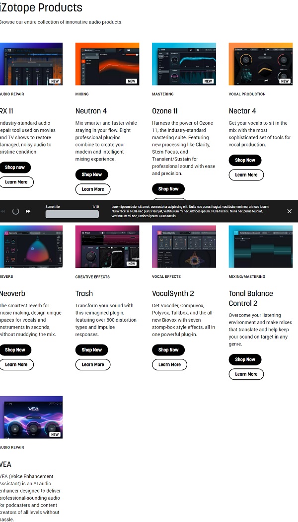 iZotope cung cấp nhiều sản phẩm và plugin nổi tiếng trong ngành công nghiệp âm nhạc và âm thanh, bao gồm: