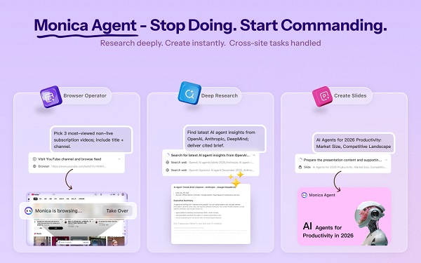 Monica Agent: Trợ lý năng suất được hỗ trợ bởi AI của bạn, tự động hóa quy trình làm việc phức tạp và hoàn thành công việc hàng giờ trong vài phút