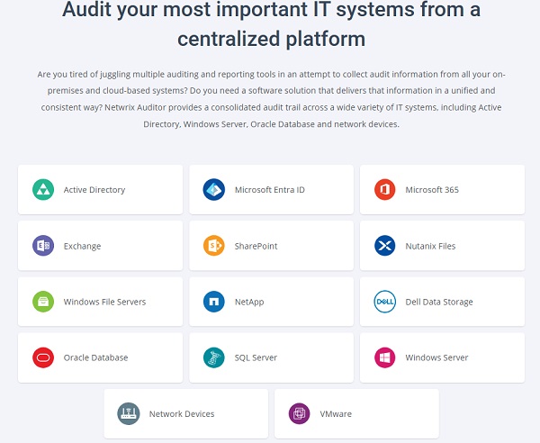 - NetApp và EMC VNX/Unity: Kiểm toán các hoạt động trên các thiết bị lưu trữ NAS/SAN.