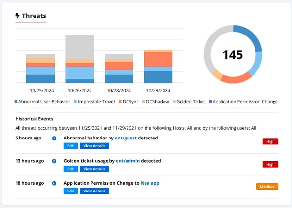 - Bảo vệ Active Directory và Microsoft Entra ID: Giám sát các thay đổi cấu hình quan trọng, hoạt động tài khoản bị xâm nhập, thay đổi quyền ứng dụng, thay đổi vai trò nhạy cảm (ví dụ: Global Admin) trong cả AD tại chỗ và Entra ID trên đám mây.