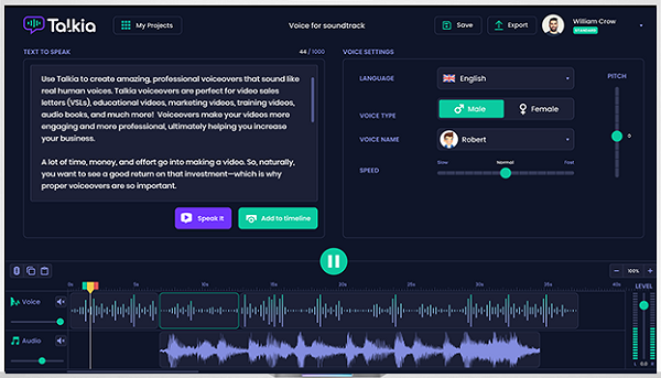 Talkia là hần mềm chuyển văn bản thành giọng nói tiên tiến nhất thế giới, cho phép bạn tạo ra những giọng lồng tiếng chuyên nghiệp tuyệt vời, nghe giống như giọng nói thật của con người