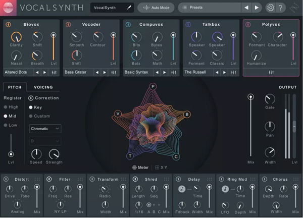 VocalSynth là một plugin độc đáo và sáng tạo dùng để biến đổi, xử lý và tạo hiệu ứng cho giọng hát, thiên về hướng thiết kế âm thanh (sound design) và hiệu ứng sáng tạo hơn là xử lý kỹ thuật như trong Nectar.